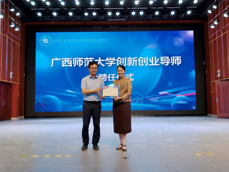 随后,会上为在2025年“码蹄杯”程序设计大赛中获奖的学生颁奖。学校创新创业学院主要负责人为计湘婷副总监颁发“广西师范大学创新创业导师”聘书。