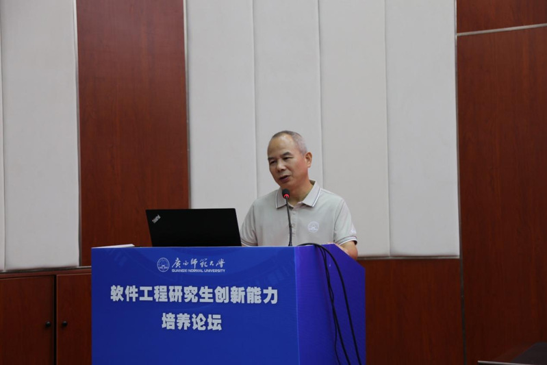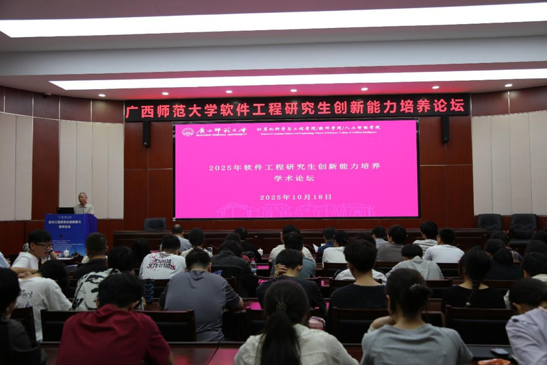 10月18日上午,由计算机科学与工程学院/软件学院/人工智能学院、教育区块链与智能技术教育部重点实验室及广西多源信息挖掘与安全重点实验室、教育智能技术广西高校工程研究中心共同举办的2025年软件工程研究生创新能力培养论坛在育才校区逸夫楼二楼报告厅举行。本次论坛邀请了来自北京航空航天大学、中南大学、湖南大学及海南大学的专家学者作专题报告,与计算机学院师生分享科学研究理论与方法、学术论文撰写、研究生创新能力培养等方面的实践经验和成果。学校党委常委、副校长李先贤教授出席论坛并致辞。
