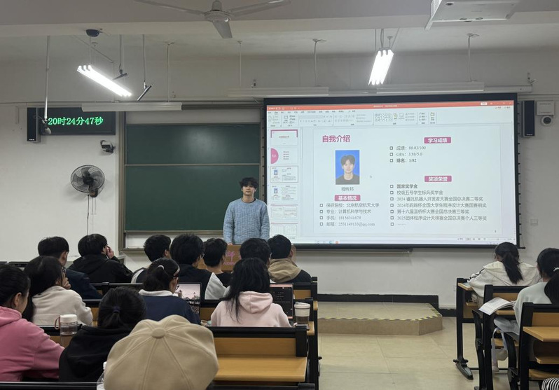 为帮助2025级新生更好地规划大学学习与未来发展方向,11月6日晚,计算机学院在理科楼306教室举办“我与优秀师兄师姐面对面”交流活动。活动特邀多位2022级已成功保研的学长学姐作为分享嘉宾,学院2025级本科生专兼职辅导员及全体新生共同参与。