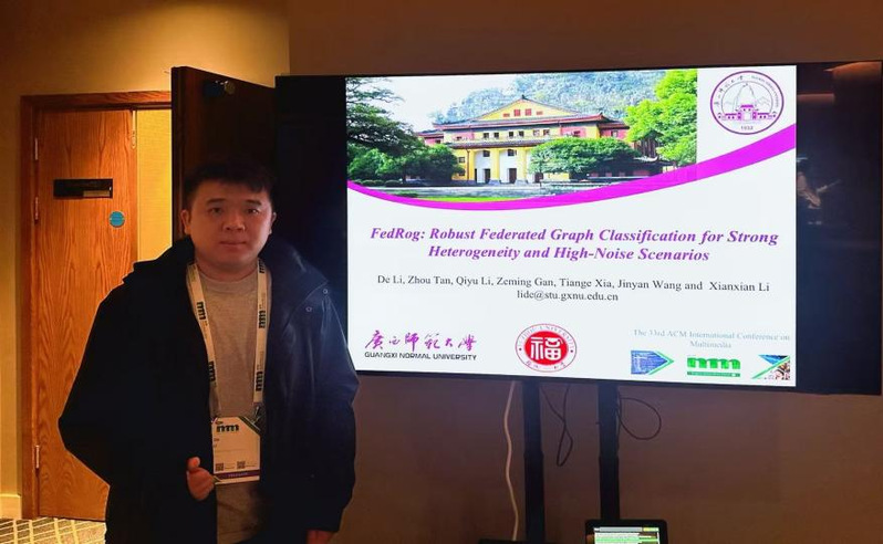 2025年10月27日至10月31日,第33届多媒体领域国际顶级会议(ACM International Conference on Multimedia, ACM MM’25)在爱尔兰都柏林召开。我院青年教师李德第一作者论文“FedRog: Robust Federated Graph Classification for Strong Heterogeneity and High-Noise Scenarios”及作为第二作者与福州大学谭宙博士生(论文第一作者,系我院2022届本科毕业生)合作的论文“FeatShield: Isolating Malicious Feature Extractors for Backdoor-Robust Federated Learning”被ACM MM’25录用,并在大会上做口头报告。ACM MM会议是多媒体处理、分析与计算领域具有影响力的国际会议,在中国计算机学会(CCF)推荐会议列表中被列为A类会议。