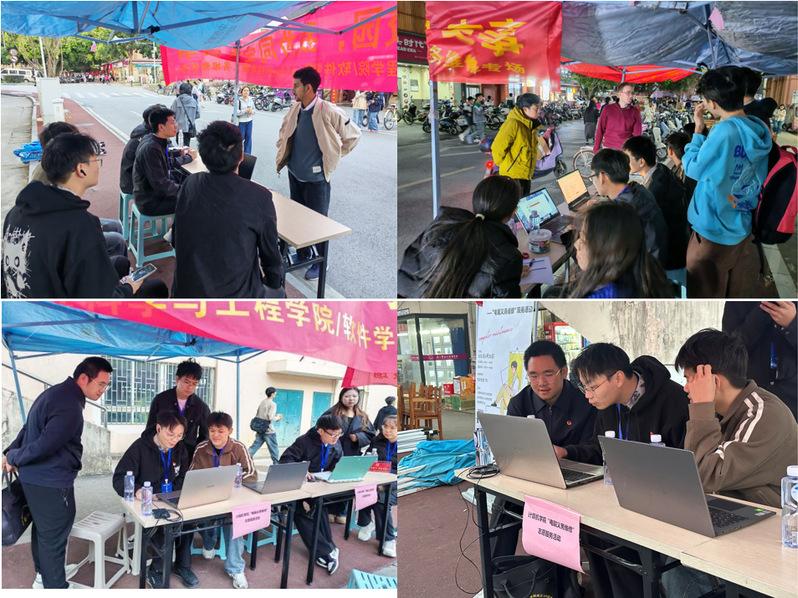 为深入贯彻“我为同学办实事”的服务理念,充分发挥学生党员的先锋模范作用,11月25日,由计算机学院研究生会牵头组织的“冬日暖‘芯’校园”电脑义务维修活动,在育才校区东苑食堂门口顺利开展。活动面向全校学生,由学院党员及入党积极分子组成的研究生“先锋志愿团队”积极参与,以实际行动践行初心使命,将专业知识转化为服务同学的暖心实践,在严寒冬日中传递出浓浓的温情。