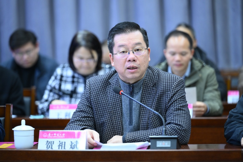 贺祖斌向验收评审⼯作专家组致以诚挚欢迎和衷⼼感谢。他表示,学校⼀直以来⾼度重视教育区块链与智能技术教育部重点实验室的建设发展,始终将实验室的发展置于学校发展全局的核⼼位置,集全校之智、举全校之⼒,予以系统性、持续性⽀持,通过完善顶层设计、强化条件⽀撑、建强⼈才队伍等⼀系列举措,全⽅位推动实验室建设取得了扎实成效。他殷切期盼专家组为实验室建设发展与验收⼯作把脉定向、建⾔献策,助⼒实验室朝着更⾼标准、更⾼⽔平迈进。