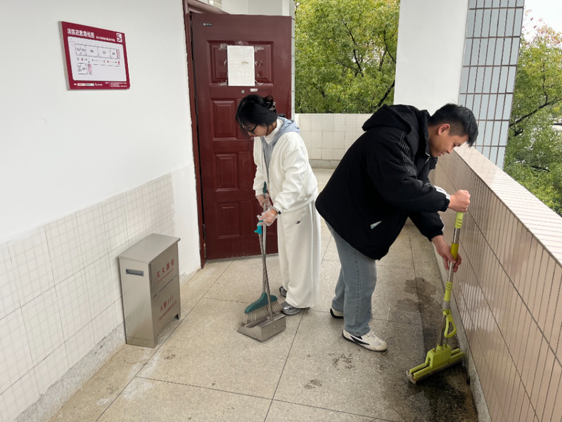 活动期间,同学们以课题组或实验室为单位,热情投入到清洁劳动中。大家分工协作,默契配合,对实验室内部空间、门前区域及公共楼道进行了地面打扫与拖洗、垃圾清理归类、书柜桌椅擦拭整理等全面细致的清扫。同学们不放过任何卫生死角,认真擦拭电桌椅,整理桌面,在劳动中体验付出,在协作中增进情谊,以实际行动美化了自己日常科研学习的主阵地。