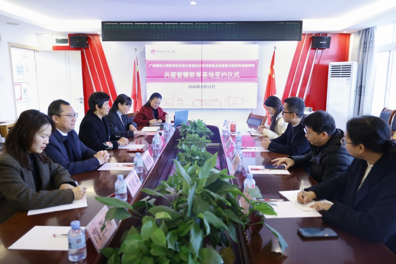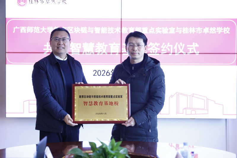 2026年1月13日上午,广西师范大学教育区块链与智能技术教育部重点实验室与桂林市卓然学校共建智慧教育基地签约仪式在卓然学校小学部举行。卓然学校校长张鹏程、广西师范大学计算机学院院长唐振军出席活动并讲话。