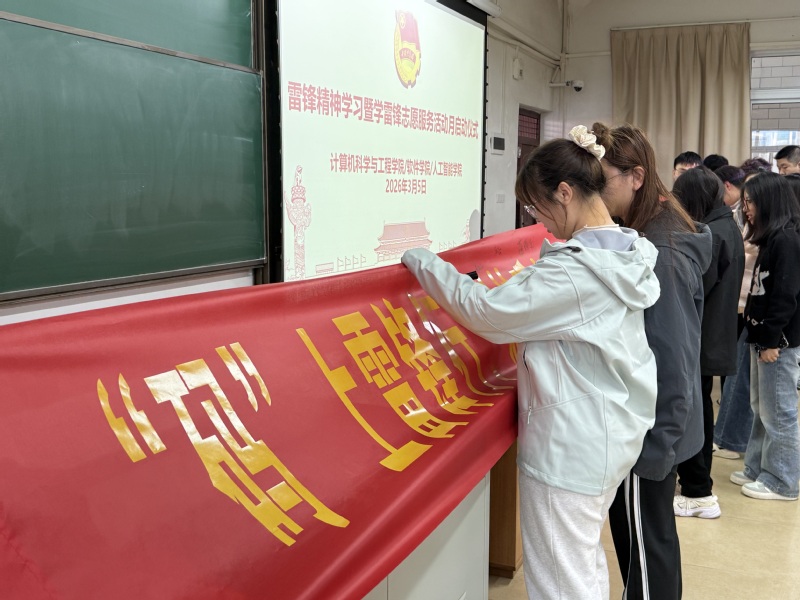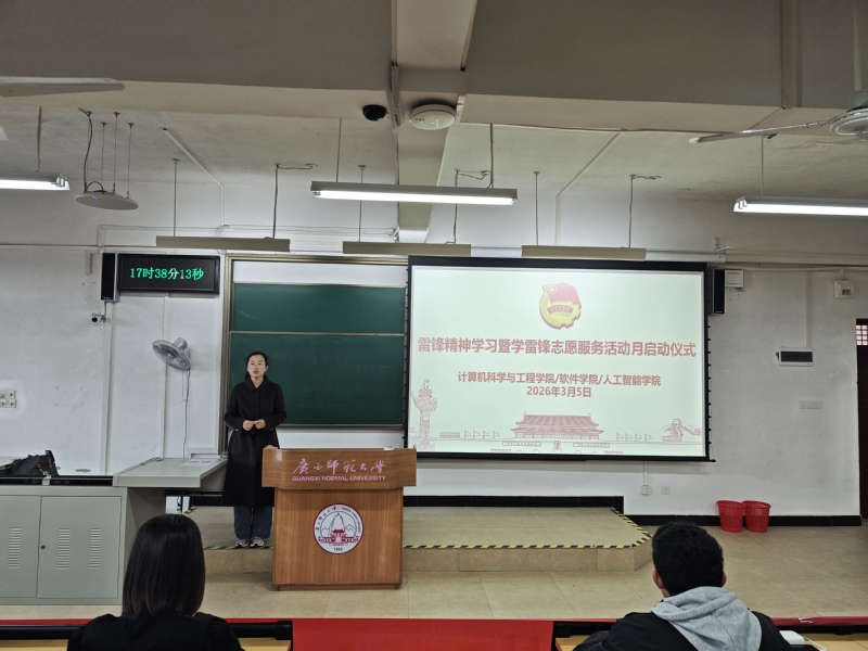 2026年3月5日,在第63个“学雷锋纪念日”到来之际,计算机科学与工程学院/软件学院/人工智能学院于理四201教室隆重举行雷锋精神学习暨学雷锋志愿服务活动月启动仪式。本次活动以“‘码’上雷锋行,科技暖人心;钻研新本领,争当‘螺丝钉’”为核心主题,学院团委负责人、第十期青马班成员、各班级班长和团支书及周末学堂志愿者代表参会,共同开启以志愿践行初心、以钻研诠释担当的新篇章。