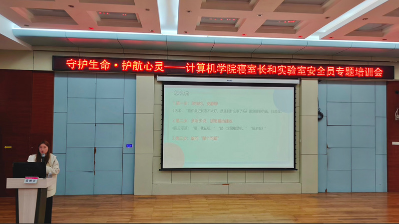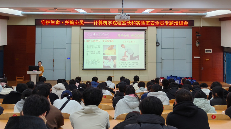 为进一步加强学生安全教育与心理健康保障工作,提升学生骨干的安全防范意识与应急处置能力,3月20日下午,计算机学院分别在雁山校区文科楼二区219报告厅和育才校区逸夫楼报告厅同步举办“守护生命·护航心灵”寝室长与实验室安全员专题培训会。本次活动邀请桂林市中西医结合医院青年志愿服务队、学校大学生心理健康中心教师及校医院医生担任主讲嘉宾,学院全体专兼职辅导员、寝室长、实验室安全员及相关学生骨干参加培训。