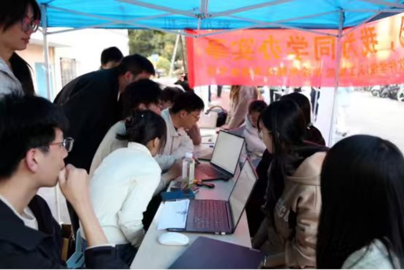 在服务中践行所学,用技术温暖校园。学院聚焦同学们日常学习中的实际技术难题,在育才校区东苑食堂门口开展“春日暖‘芯’校园,我为同学办实事”电脑义务维修活动。由学院组建的志愿服务团队发挥专业所长,提供免费维修服务,并结合实际问题讲解日常维护与网络安全知识,帮助同学们提升信息素养。